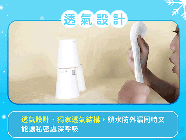 (2) 撕下衛生棉底部中間背膠貼紙,將背膠緊貼褲底。