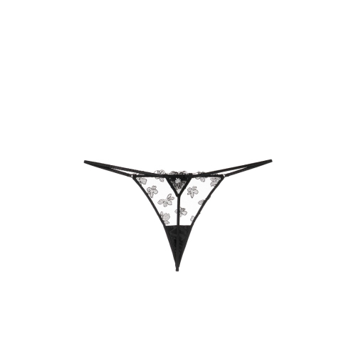 設計亮點:黑色,彈性設計,網布拼接,半透明拼接,花卉刺繡,丁子褲式,彈性鬆緊腰邊,高衩,試穿這款商品,請穿著於自身衣物之外。