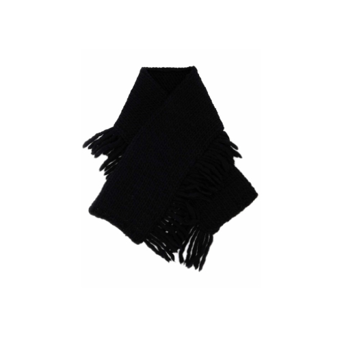 黑色 羊毛 粗羅紋針織 流蘇細節 矩形 環繞式設計。