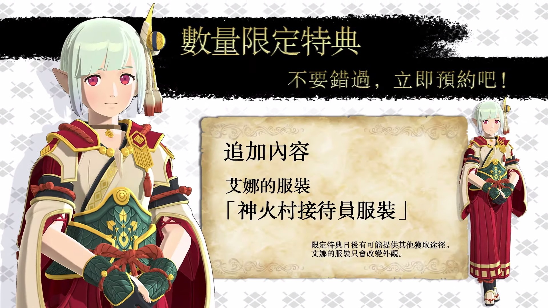 與《魔物獵人 崛起(Monster Hunter Rise)》的儲存資料連動即可獲得主角的外觀裝備「神火裝」!