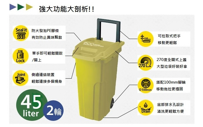 日本RISU|eco container機能型戶外拉桿防臭垃圾桶 45L