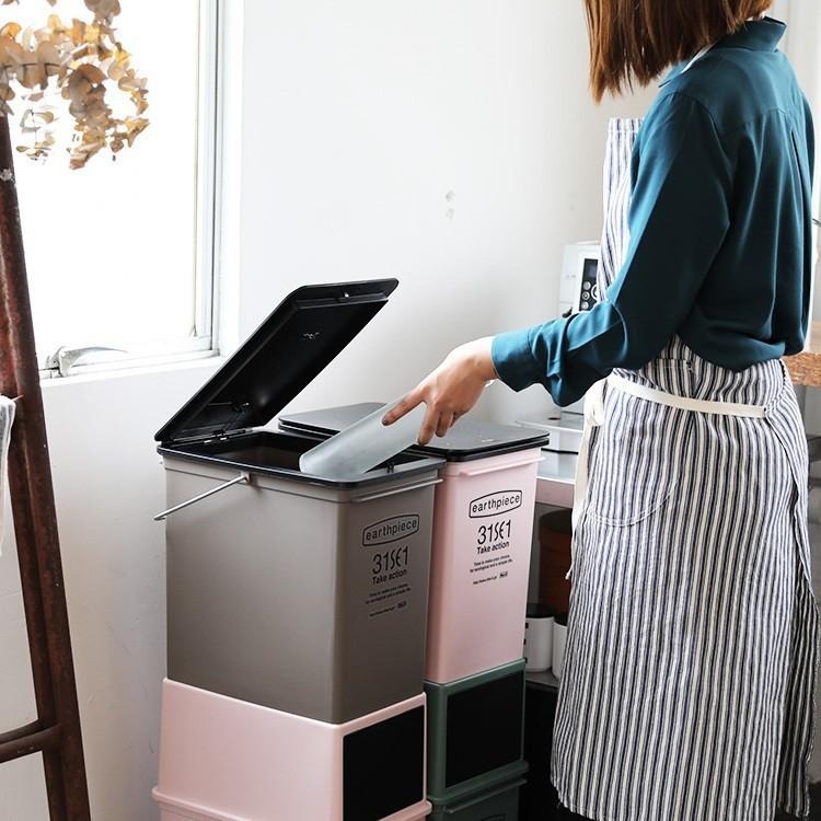 日本Like-it|earthpiece上蓋按壓式可堆疊垃圾桶 17L 廚房 臥室 浴室 質感垃圾桶