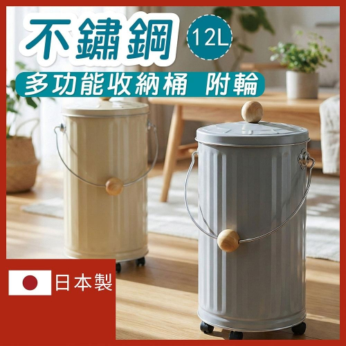 日本 OBAKETSU|不鏽鋼防臭多功能收納桶(附輪)12L 垃圾桶 收納桶 洗衣籃