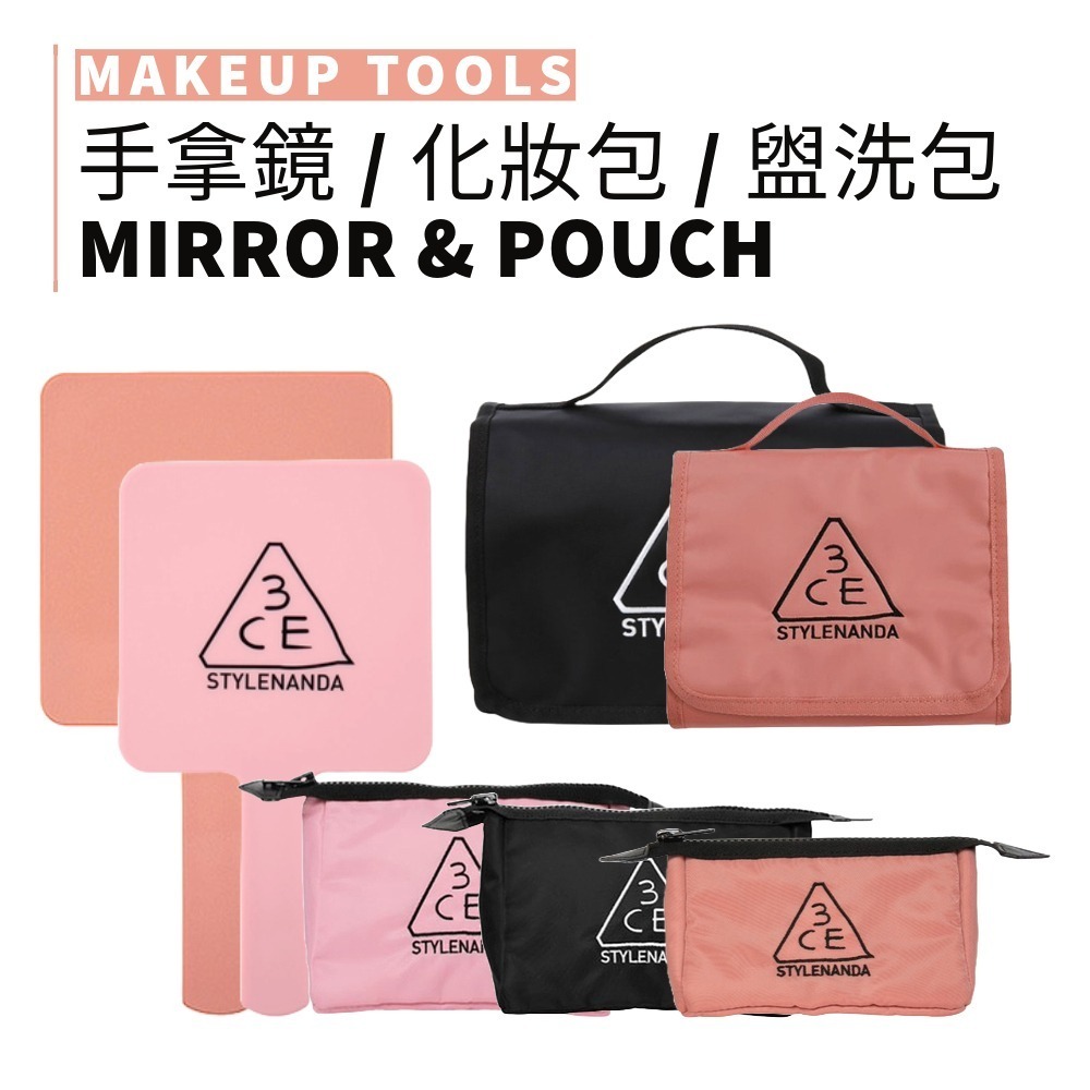 3CE|鏡子 手拿鏡 方型鏡 收納包 化妝包 三角包 盥洗包 洗漱包 收納 旅行|smnida美妝|