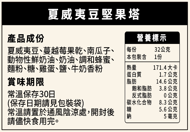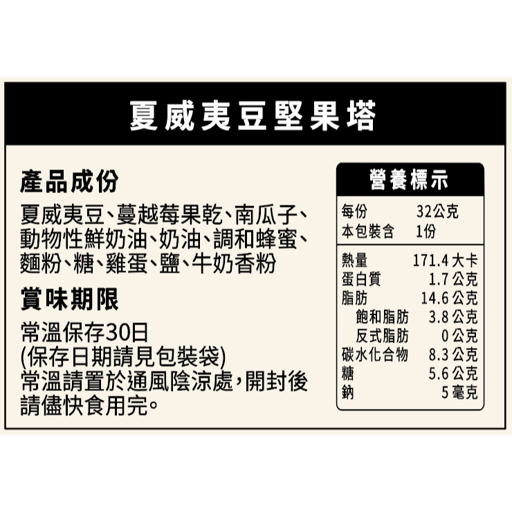📦 內容物:夏威夷豆堅果塔6片
