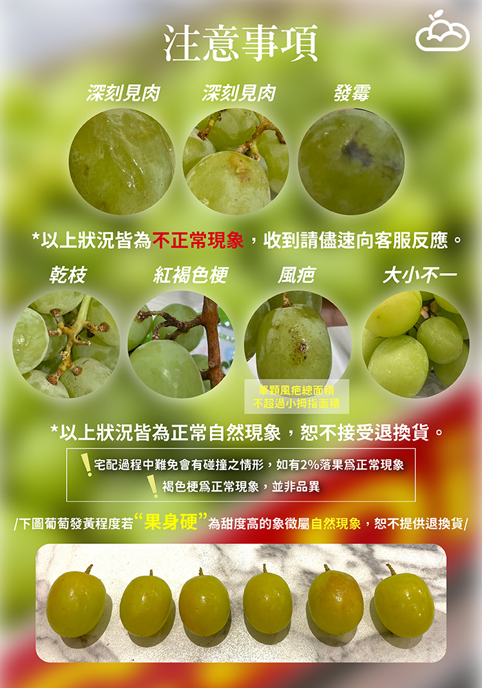 • 祕魯秋脆葡萄:清脆爽口、甜美多汁,帶來完美的口感享受。