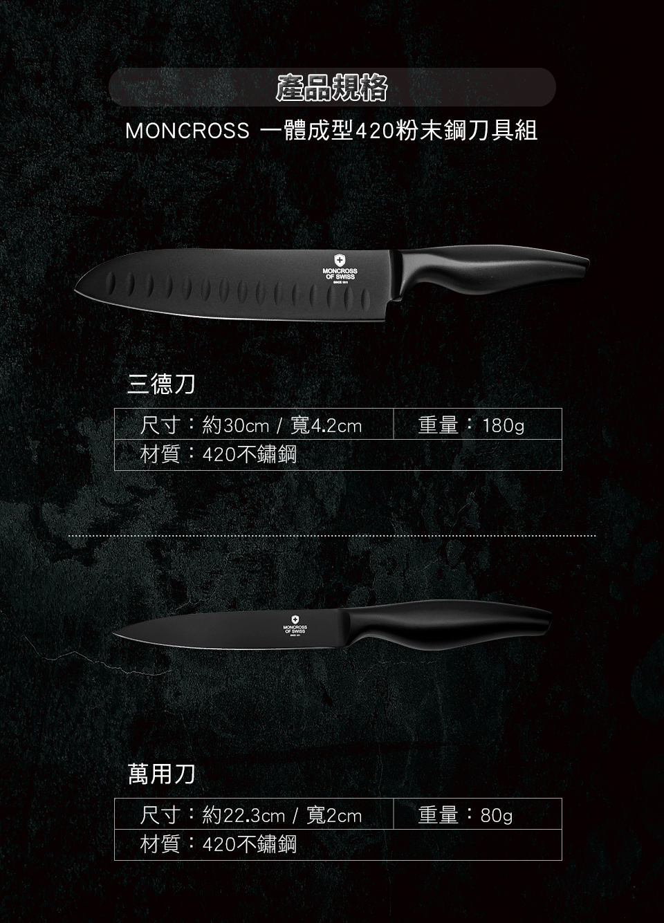 品名: 瑞士MONCROSS 一體成型420粉末鋼刀組