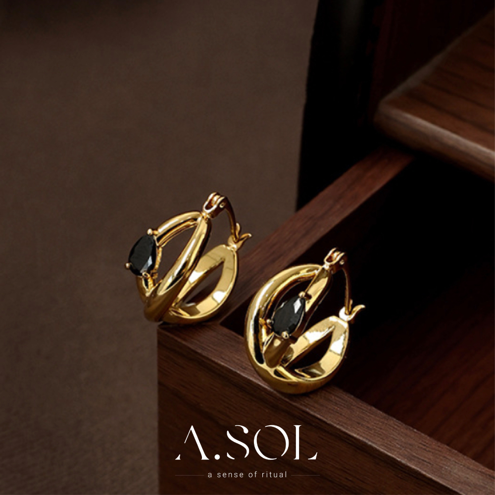 材質|黃銅|電鍍18K真金|黑鋯石鑲嵌