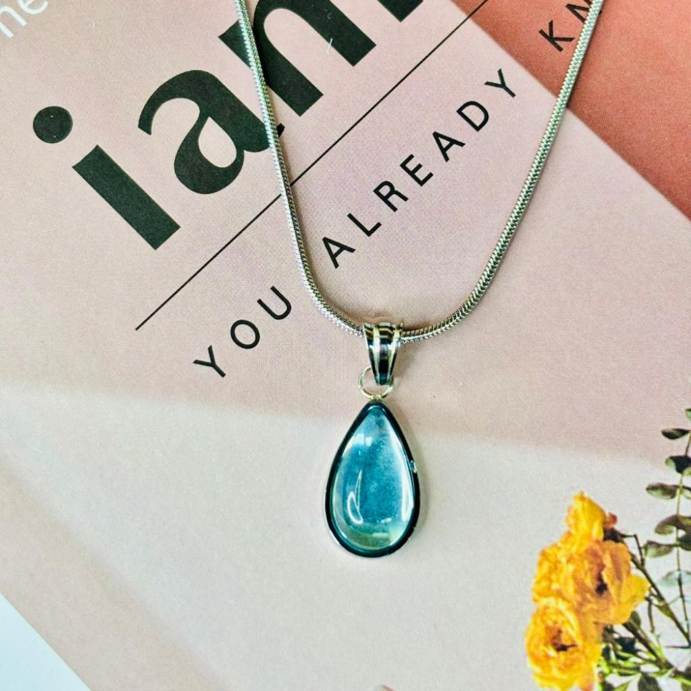 2107MY【小確幸飾品】鈦鋼項鍊 鈦鋼 醫療鋼 抗過敏 不褪色 防水 耐磨 質感 銀色 白鋯 幸運結 海藍水滴