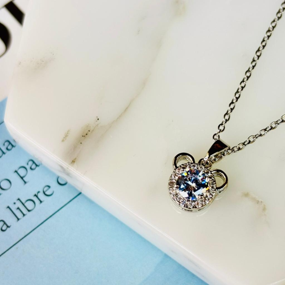 2028MA【小確幸飾品】鈦鋼項鍊 鈦鋼 醫療剛 抗過敏 不褪色 銀色 小熊 熊熊 白鋯 日韓 流行 可愛 動物