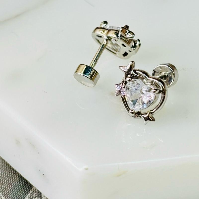 【小確幸飾品】醫療鋼鎖珠造型耳釘 貼耳 輕奢 日韓 百搭 不易過敏 不易褪色 白鋯蝴蝶 雙星 紫鋯水滴 白鋯愛心