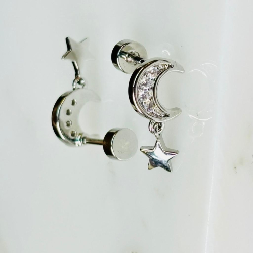 1011MA【小確幸飾品】醫療鋼鎖珠耳環 抗過敏 不退色 5A鋯石 貼耳 輕奢 日韓 百搭 白鋯 星月 星星 月亮
