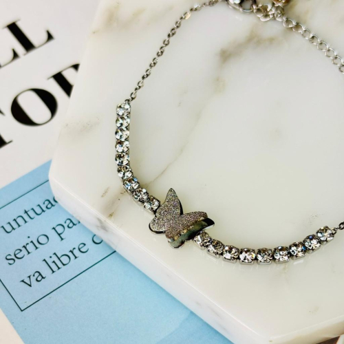 3006MA【小確幸飾品】鈦鋼手鍊 鈦鋼 醫療剛 抗過敏 不褪色 蝴蝶 雙層 磨砂 白鋯 日韓 輕奢 龍蝦扣