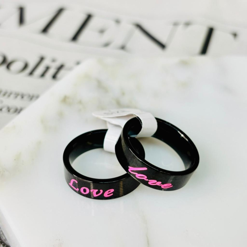 4108MA【小確幸飾品】鈦鋼戒指 抗過敏 不褪色 防水 耐磨 固定戒圍 質感 黑色 對戒 love 戒寬6mm