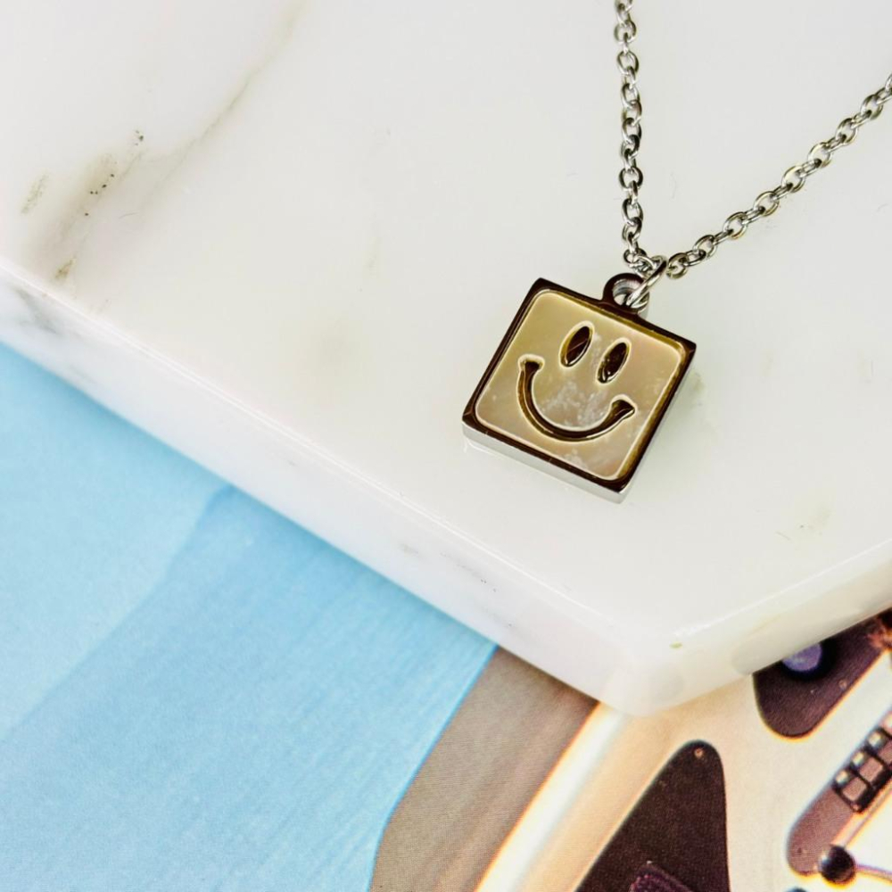 2023MA【小確幸飾品】鈦鋼項鍊 鈦鋼 醫療剛 抗過敏 不褪色 笑臉 方框 白貝 日韓 流行