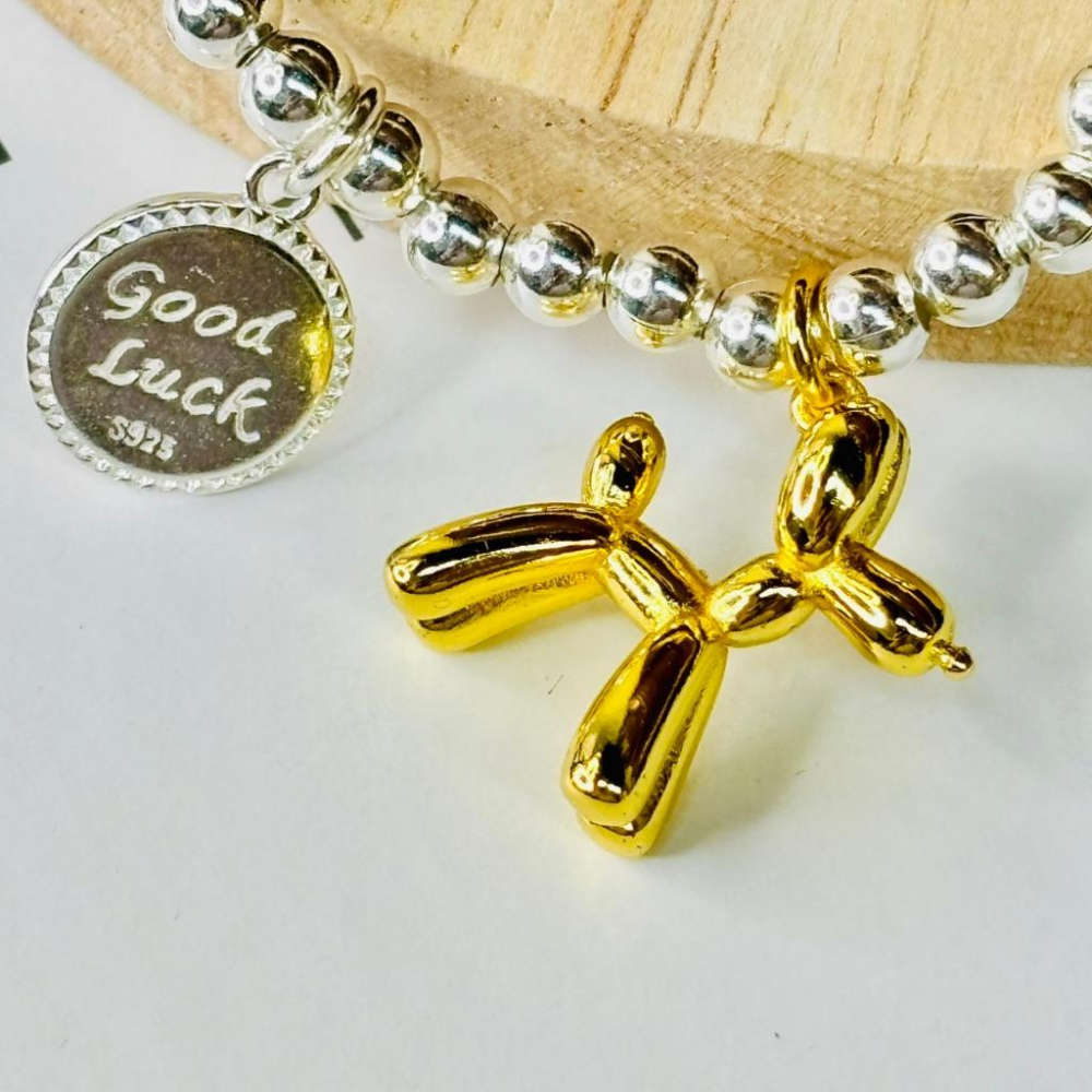 3004DE【小確幸飾品】彈力繩手環 流行 質感 氣球狗狗 笑臉 貝珠 金色 黃色 黑色 美拉德綠