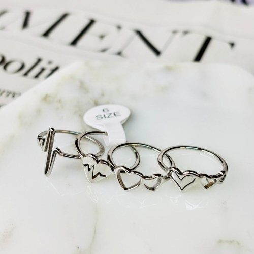4088MA【小確幸飾品】鈦鋼戒指 抗過敏 不褪色 防水 耐磨 固定戒圍 質感 心跳 愛心 雙心 三心 半圈 正反 鏤空