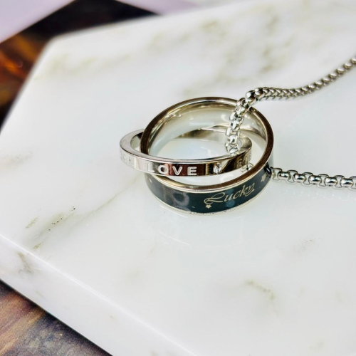 2043MA【小確幸飾品】鈦鋼項鍊 鈦鋼 醫療鋼 抗過敏 不褪色 防水 耐磨 日韓 流行 質感 雙環 黑釉 白鋯