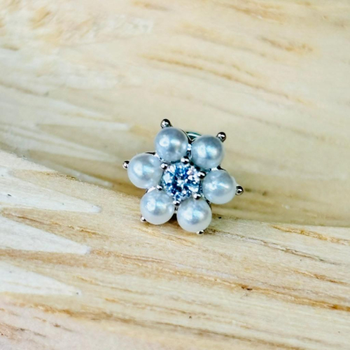 1024AP【小確幸飾品】醫療鋼鎖珠耳釘 抗過敏 不褪色 防水 耐磨 5A鋯石 貼耳 輕奢 日韓 百搭 白貝 珍珠花
