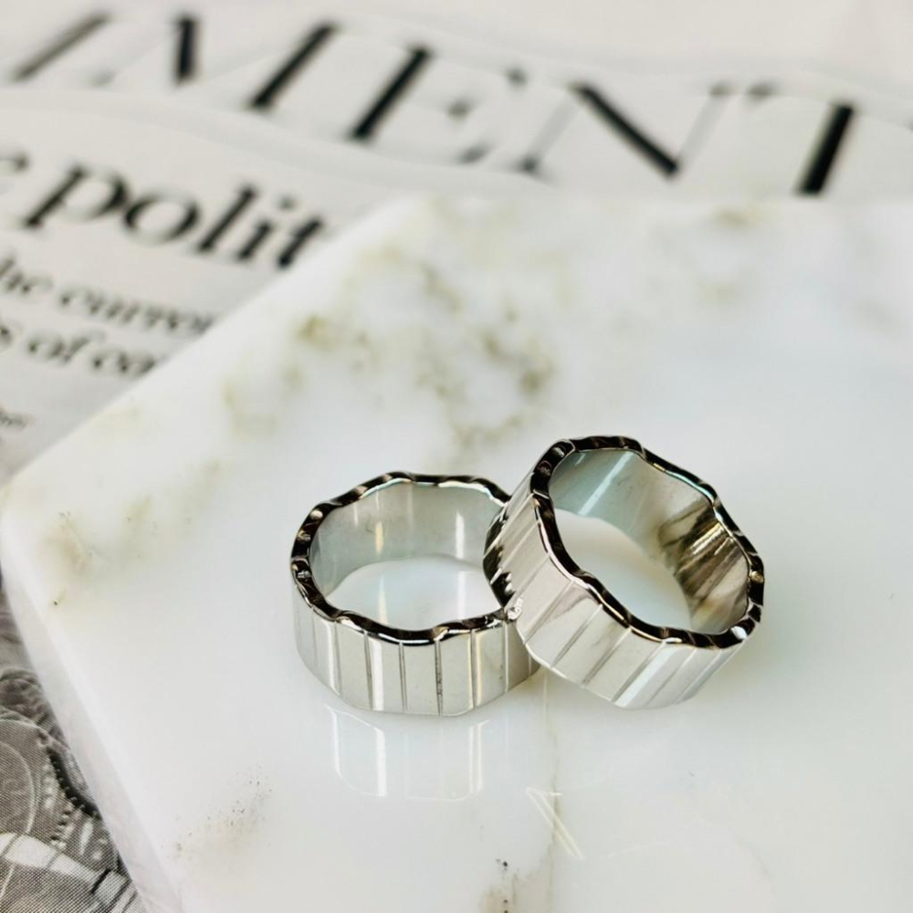 4101MA【小確幸飾品】鈦鋼戒指 抗過敏 不褪色 防水 耐磨 固定戒圍 質感 花朵 不規則長方波浪 鏤空蝴蝶 鏤空交叉