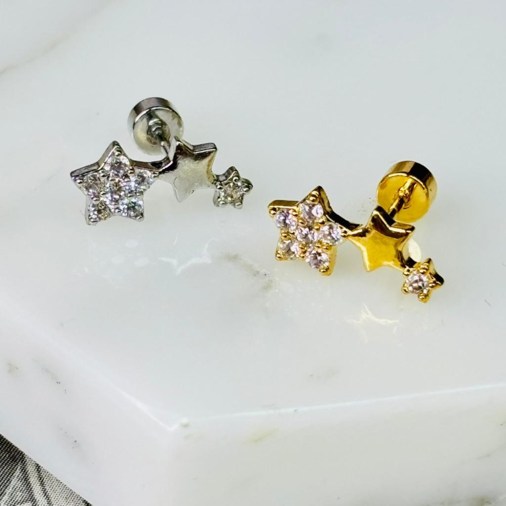【小確幸飾品】醫療鋼鎖珠造型耳釘 貼耳 輕奢 日韓 百搭 醫療鋼 不過敏 不褪色 金色 銀色 星星 排星 三星 星月控