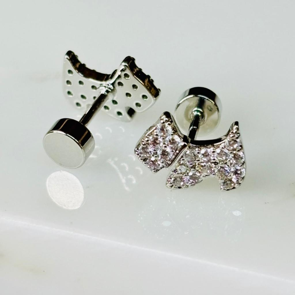 1005MA【小確幸飾品】醫療鋼鎖珠耳釘 抗過敏 不退色 貼耳 輕奢 日韓 百搭 白鋯 約克夏 狗狗 動物 可愛