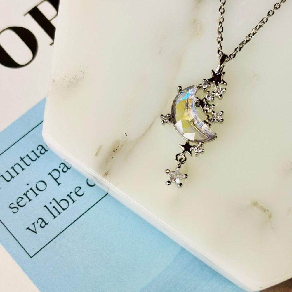 2036MA【小確幸飾品】鈦鋼項鍊 鈦鋼 醫療剛 抗過敏 不褪色 星月 月亮 星星 彩鋯 人魚肌 白鋯 日韓 流行 輕奢