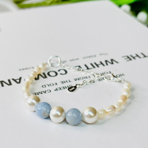 7301AP【小確幸飾品】純白守護 設計款手鍊 珍珠 天使石 優雅 質感 細膩工藝 輕盈魅力