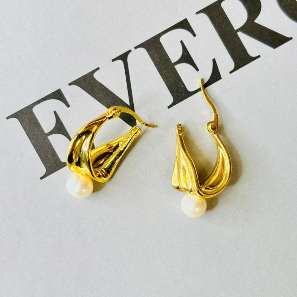 1001AP【小確幸飾品】珍珠耳飾 耳環 耳扣 貝珠 珍珠 金色 巴洛克 雙珠 鈴蘭花 粉滴釉 線條 花籃 圈圈