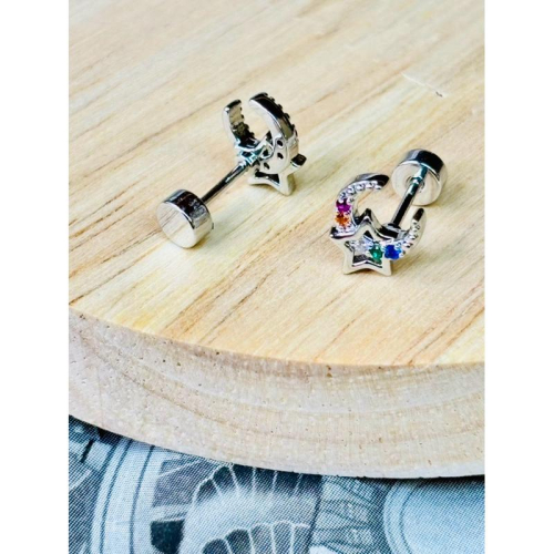 【小確幸飾品】醫療鋼鎖珠造型耳釘 貼耳 輕奢 日韓 百搭 不易過敏 不易褪色 白鋯星月 彩鋯星月 白鋯貝殼