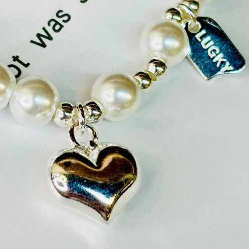3015DE【小確幸飾品】彈力繩手環 流行 質感 愛心 幸運 貝珠 撞色
