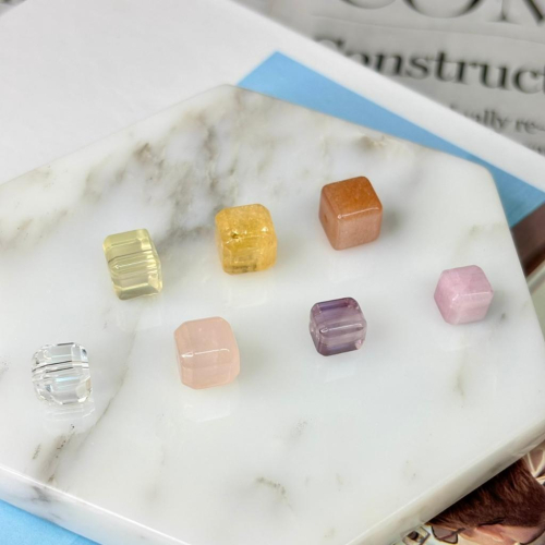 8507JA【小確幸飾品】天然水晶方糖 DIY 主珠 配珠 白水晶 粉水晶 紫水晶 紫鋰輝 檸檬晶 黃塔晶 金太陽