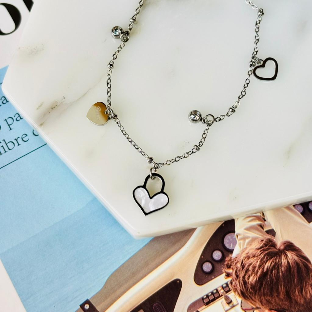 3003MA【小確幸飾品】鈦鋼手鍊 鈦鋼 醫療剛 抗過敏 不褪色 白貝 愛心 心鎖 白鋯 龍蝦扣