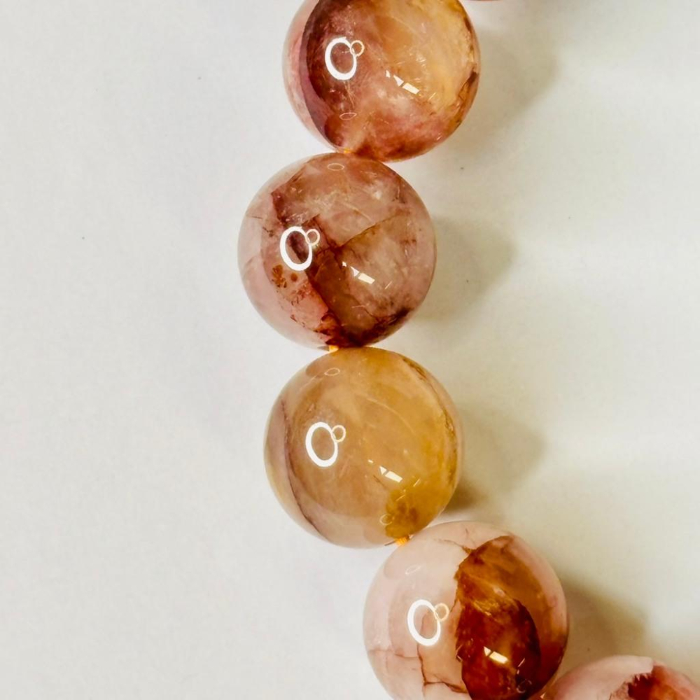 83097JU【小確幸飾品】紅黃膠花水晶手串 五行火土能量 海底胃輪療癒 天然礦石