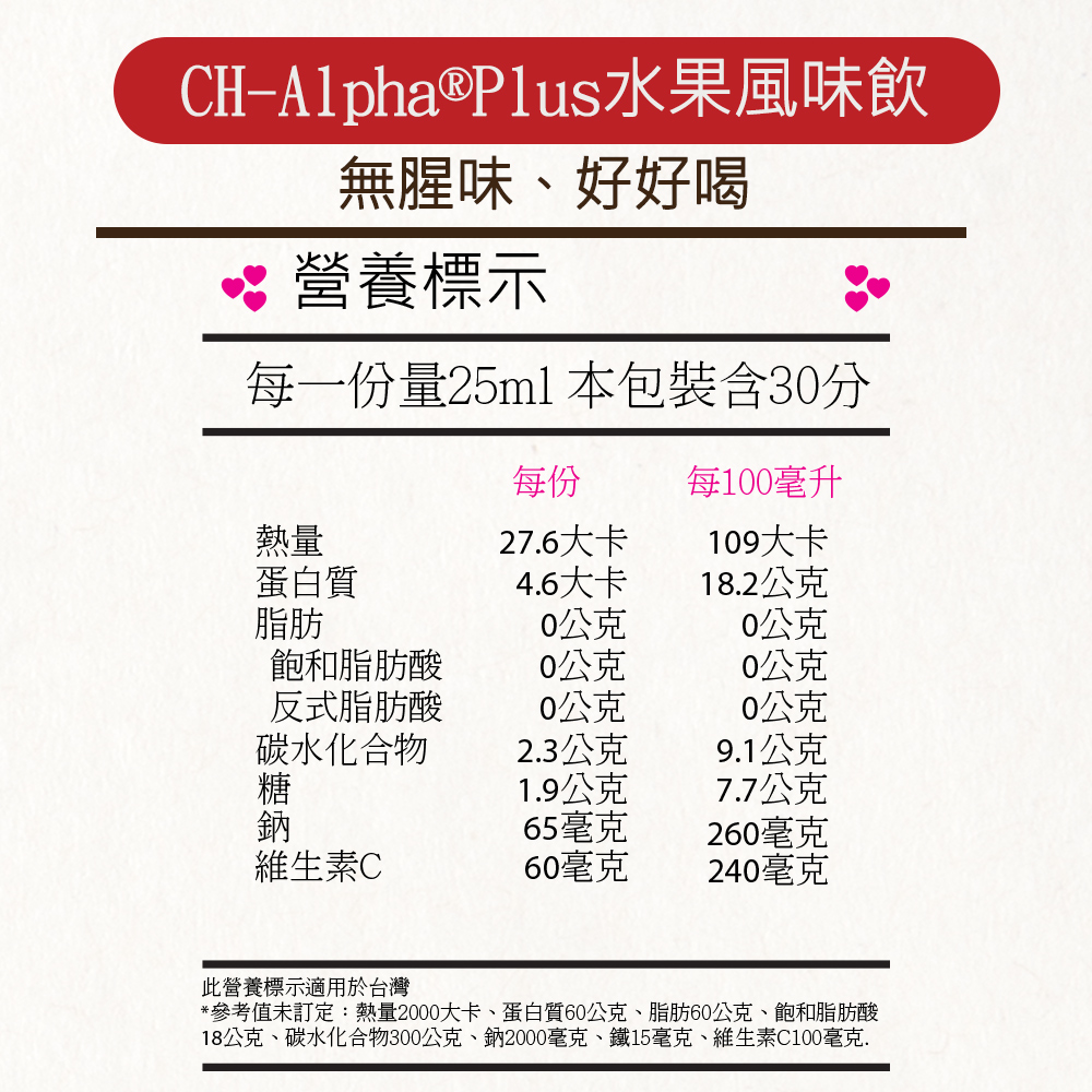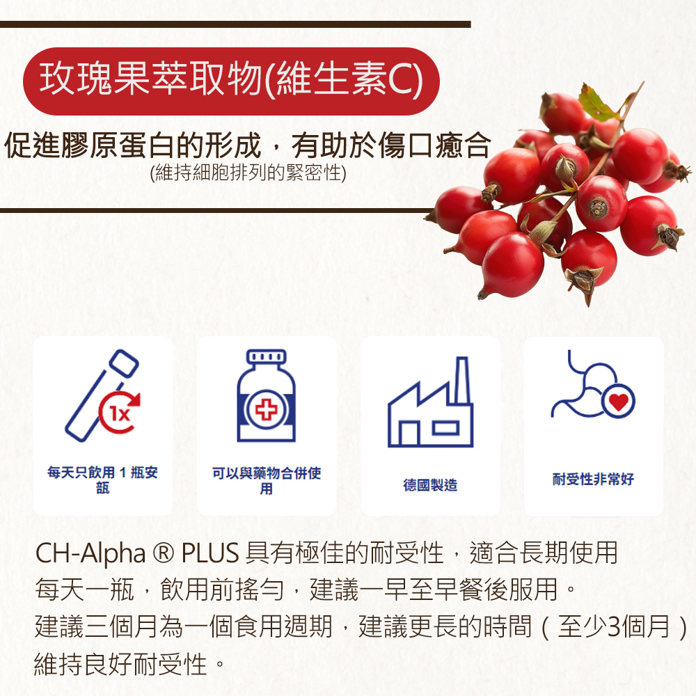 德國 CH-Alpha Plus 水果風味飲25ml/瓶 30瓶/盒 加強版 紅蓋 膠原蛋白口服液 添加玫瑰果提取物及維生素C