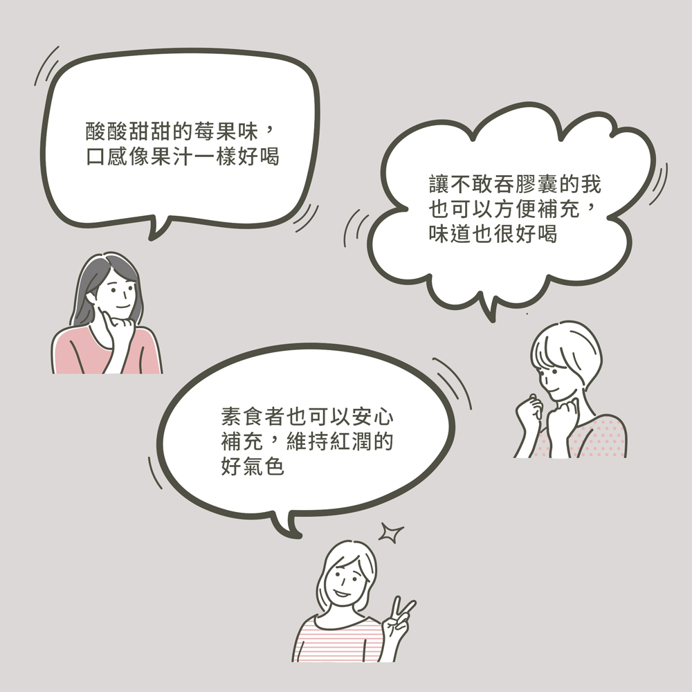成分:濃縮果汁(野櫻莓,草莓,黑醋栗,黑莓,接骨木果),水,龍舌蘭糖漿,葡萄糖酸亞鐵,維生素C,山梨酸鉀(防腐劑),檸檬酸,維生素B6,維生素B1,維生素B2,維生素B12