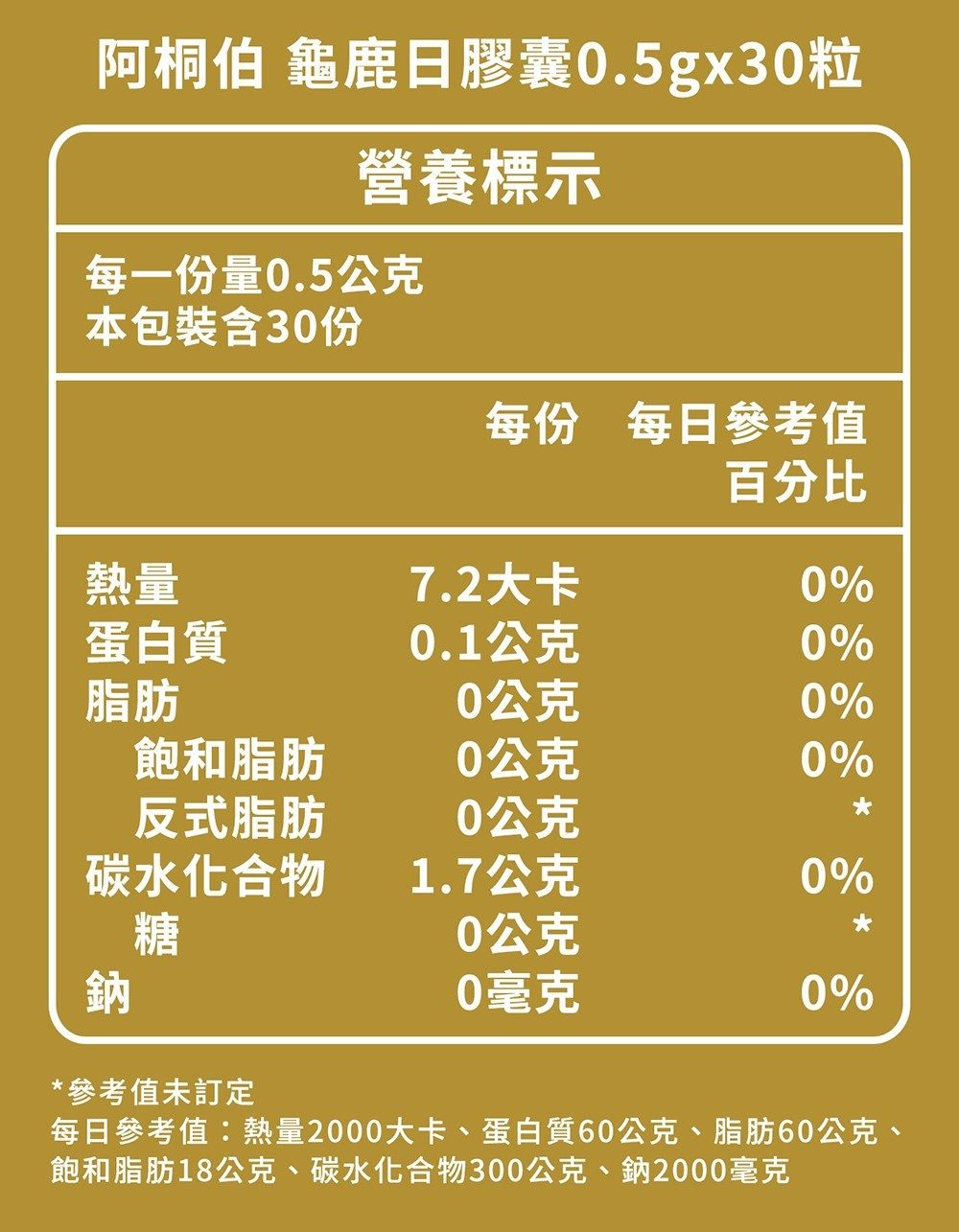 ▲[阿桐伯 龜鹿日膠囊0.5gx30粒]