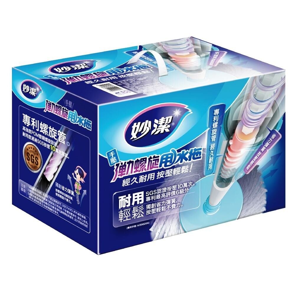 商品名稱:妙潔 手壓彈力螺旋甩水拖 1桿1桶2布 [宅配免運!]