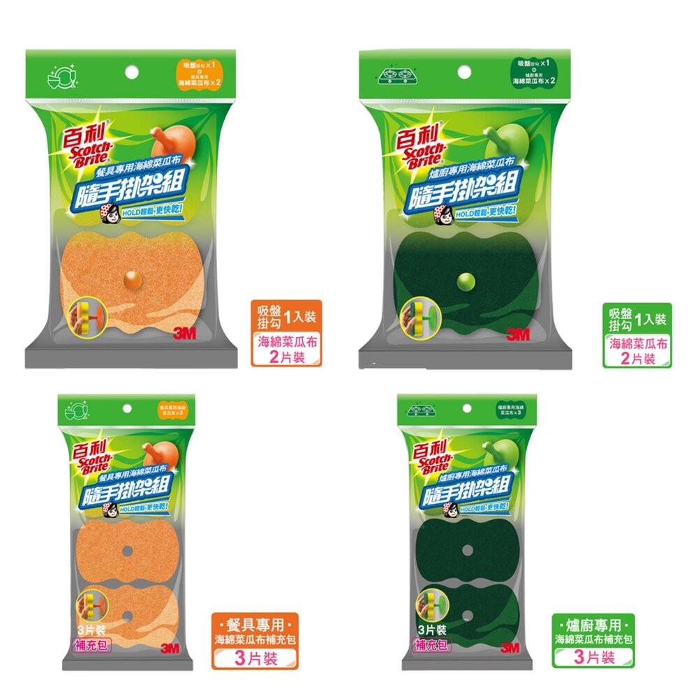 商品名稱:3M 百利菜瓜布隨手掛架組:爐廚專用&餐具專用海綿菜瓜布 、海綿菜瓜布補充包(3入)