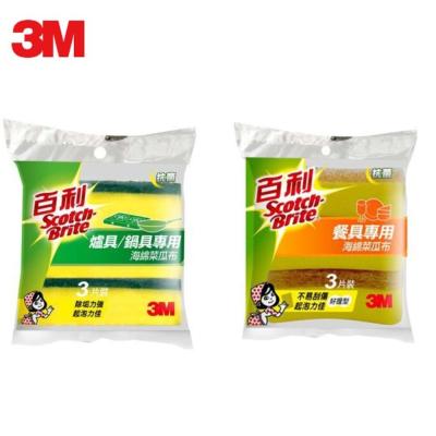 商品名稱:3M 爐具鍋具 / 餐具專用海綿菜瓜布3片裝