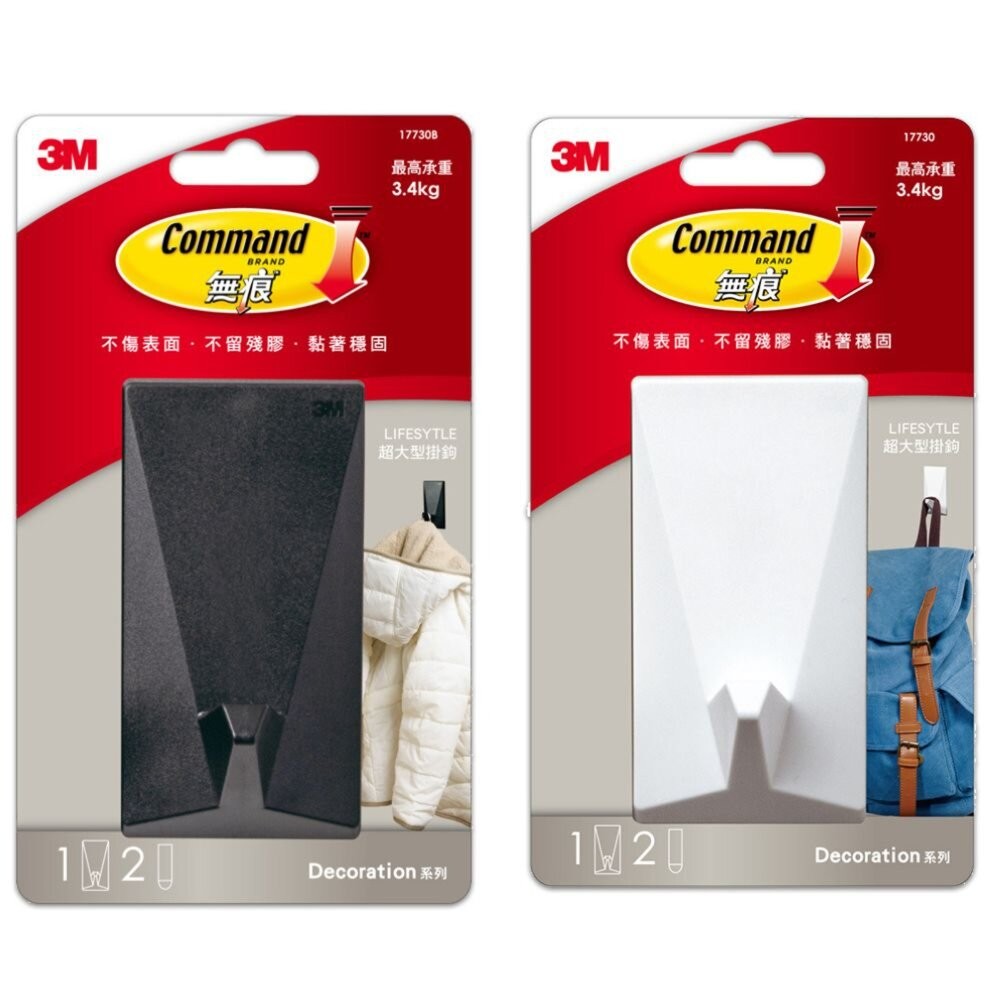 3M 無痕 LIFESTYLE-超大型掛鉤-白色、黑色