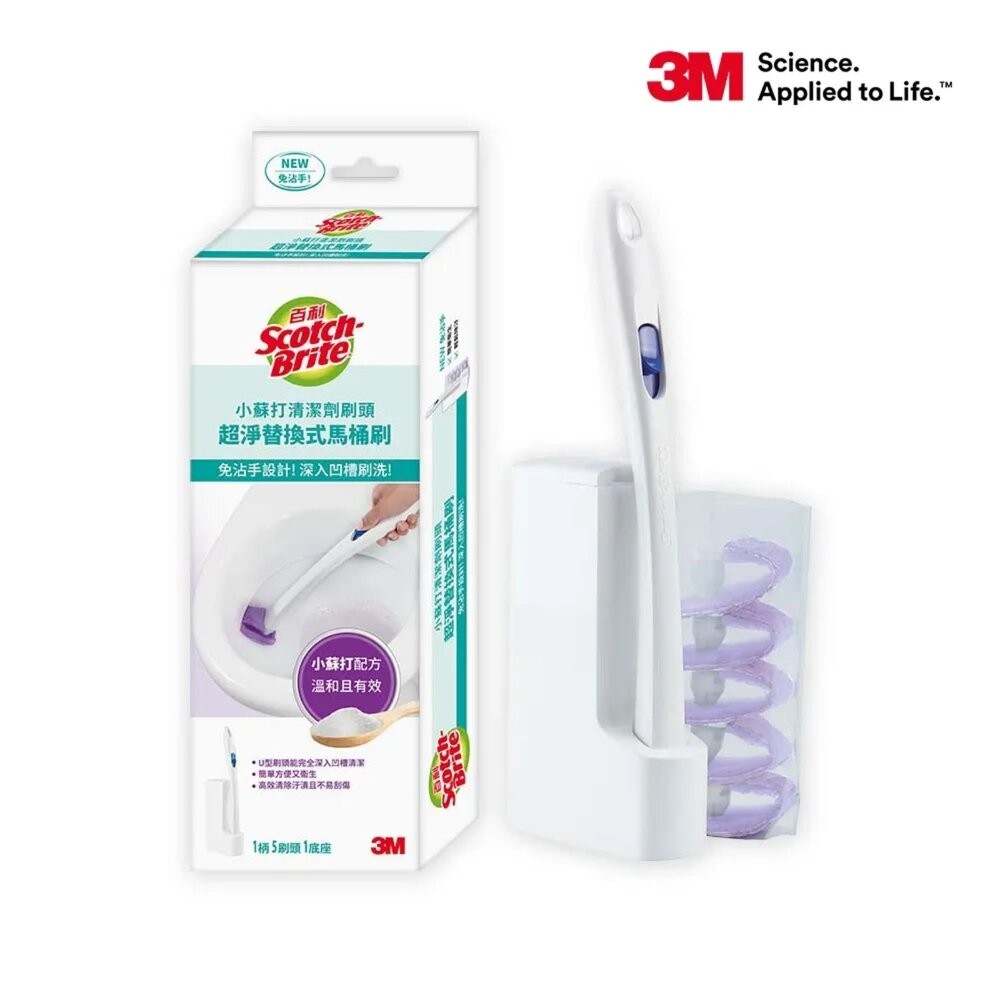 3M 百利超淨替換式馬桶刷-小蘇打清潔配方(1柄+5刷頭+1底座)