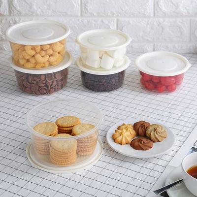 淨白無瑕色調,圓型設計,可冷藏、可放入洗碗機清洗、可將盒蓋拿起微波;盒蓋凸部,便於打開,可相互層層疊放,有兩種尺寸的產品,可供選擇,亦可堆疊收納,節省空間;耐溫-20度C至110度C。