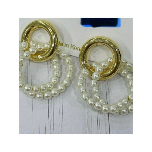 ✨台灣現貨✨😘正韓😘氣質珍珠雙圈耳環|單圈金屬交錯設計|優雅百搭針式耳環|單色