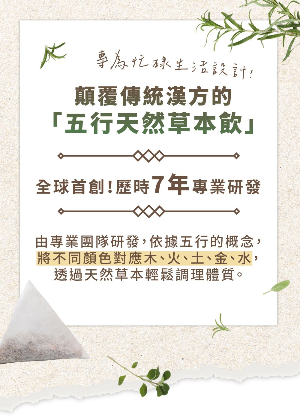 蘊含了大自然五種元素的能量,將您引導回平衡與寧靜的核心。無論您是想要片刻的放鬆,還是尋找創意的靈感,五行茶都能伴您一路同行