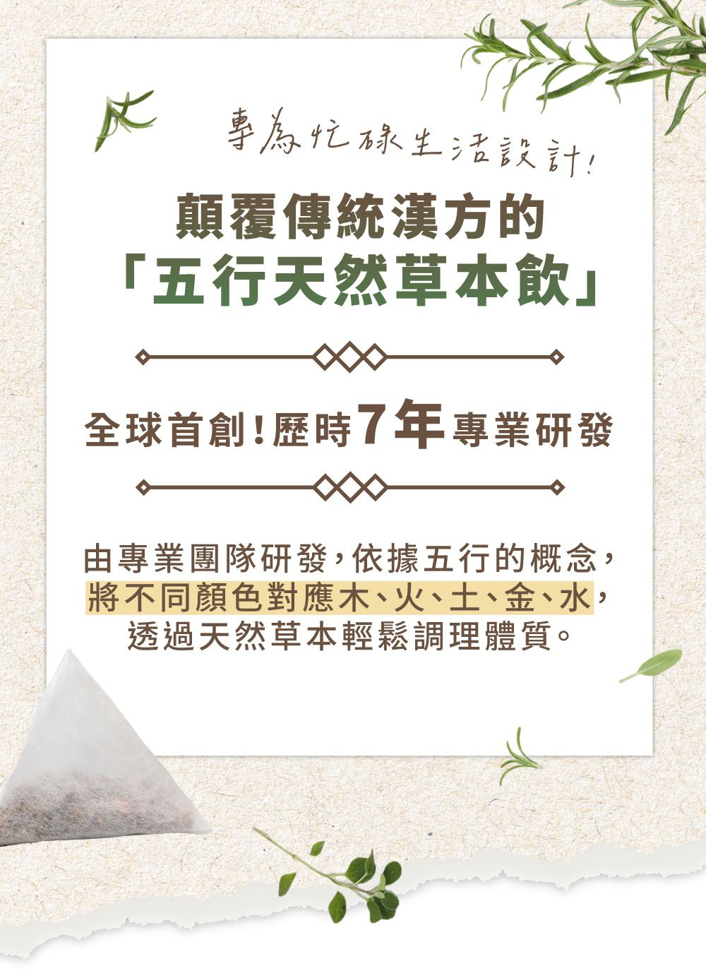 蘊含了大自然五種元素的能量,將您引導回平衡與寧靜的核心。無論您是想要片刻的放鬆,還是尋找創意的靈感,五行茶都能伴您一路同行