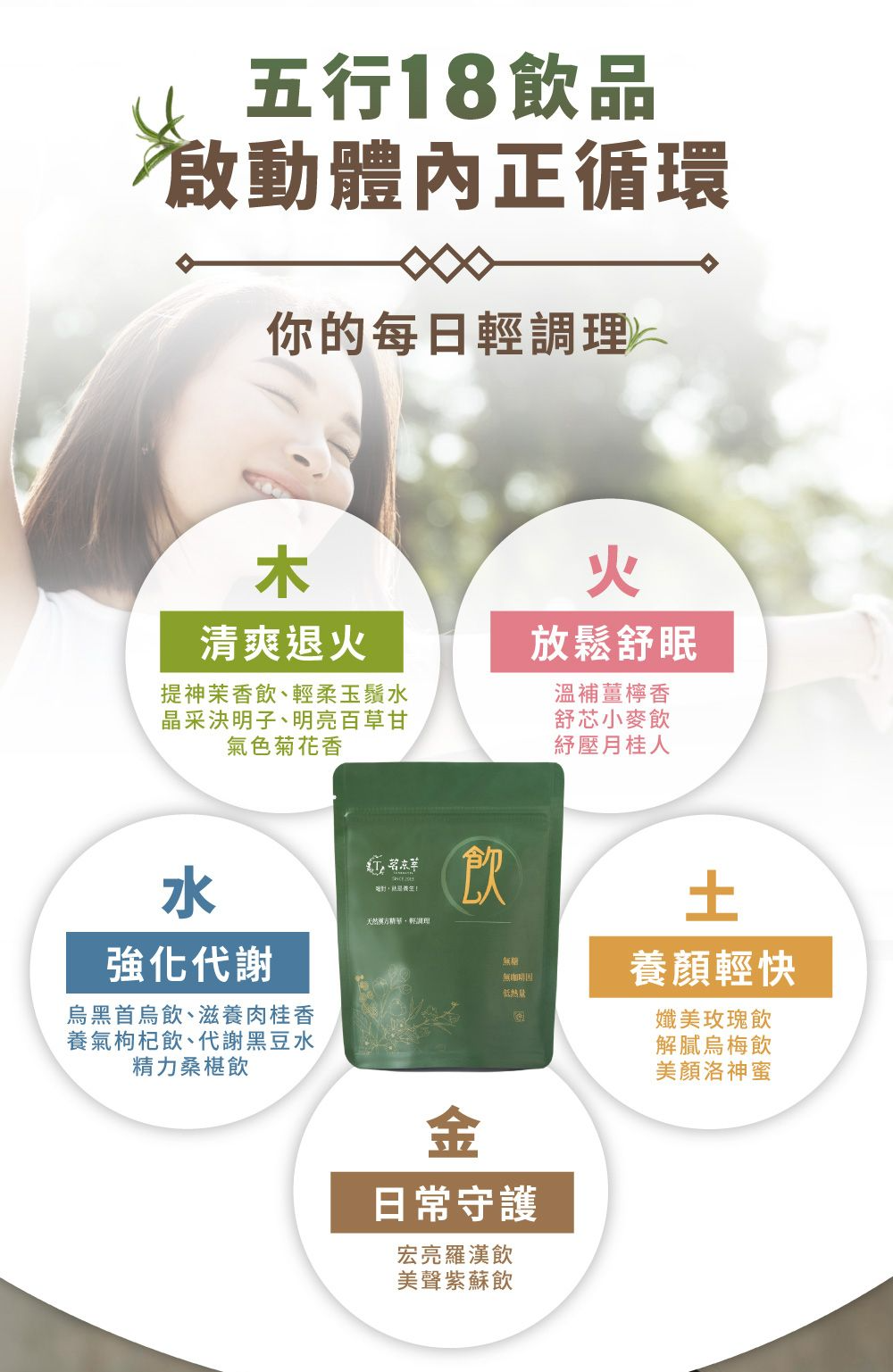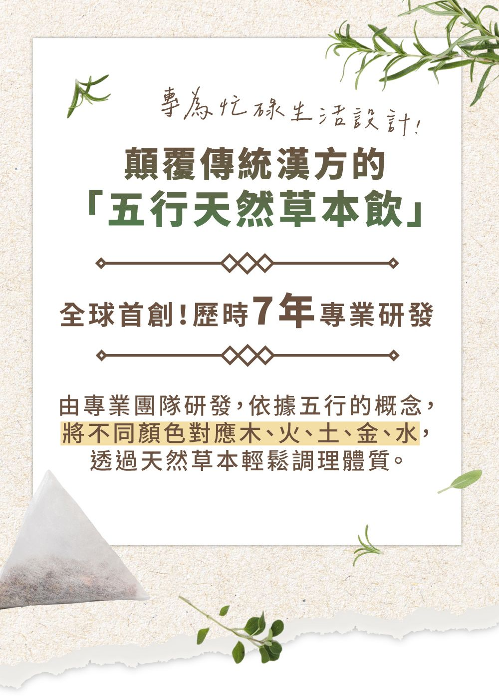蘊含了大自然五種元素的能量,將您引導回平衡與寧靜的核心。無論您是想要片刻的放鬆,還是尋找創意的靈感,五行茶都能伴您一路同行