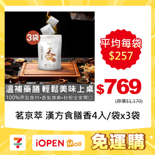 【7-ELEVEN門市團購】茗京萃-漢方食膳香|獨門配方 4入/袋 x3袋