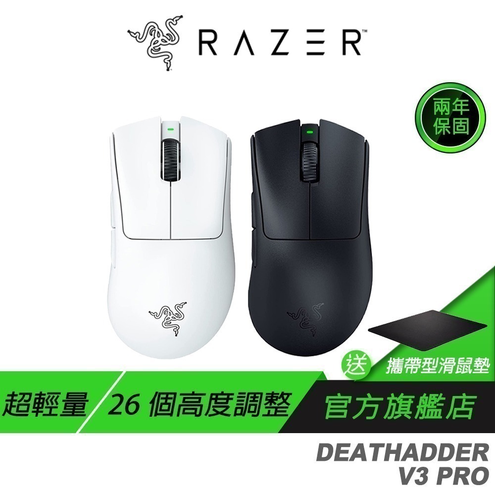 BOX-CONTENTS Razer DeathAdder V3 Pro / 無線 USB 傳輸器 + USB 傳輸轉接器 / Type A 轉 Type C Speedflex 纜線 / Razer 防滑滑鼠貼 / 重要產品資訊指南