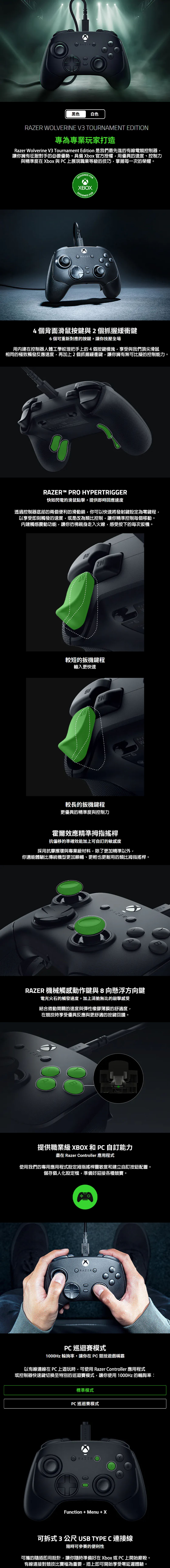 Razer Wolverine V3 Tournament Edition 是我們最先進的有線電競控制器,讓你擁有征服對手的必要優勢。具備 Xbox 官方授權,用優異的速度、控制力與精準度在 Xbox 與 PC 上展現職業等級的技巧,掌握每一次的榮耀。
